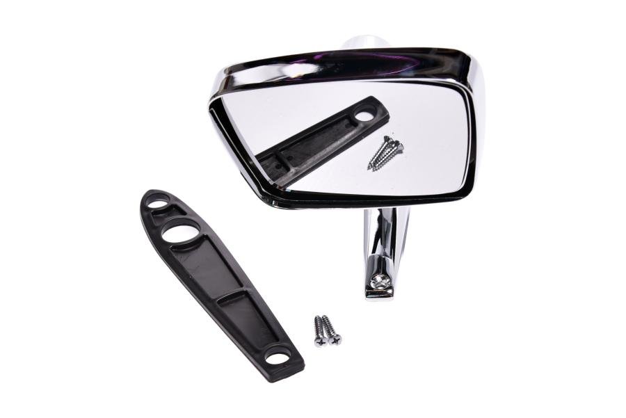 Includes Rectangular mirror assembly, mounting base, door mount gasket, and attachment hardware