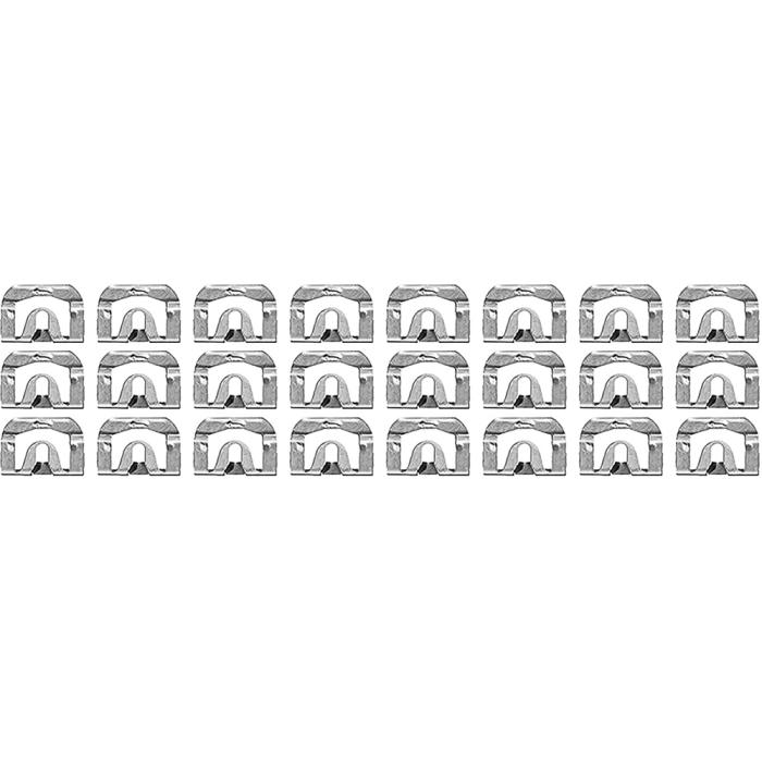 A 24-piece upper and lower windshield/back window molding clip set designed to securely fasten and align trim on classic GM cars. Fits the critical mounting points for glass moldings, preventing vibration, rattles, and water intrusion while restoring factory fit and appearance. Durable, corrosion-resistant components simplify installation and provide a reliable, long-lasting replacement for worn or missing original clips during restoration or maintenance projects.