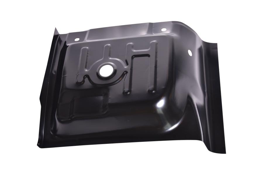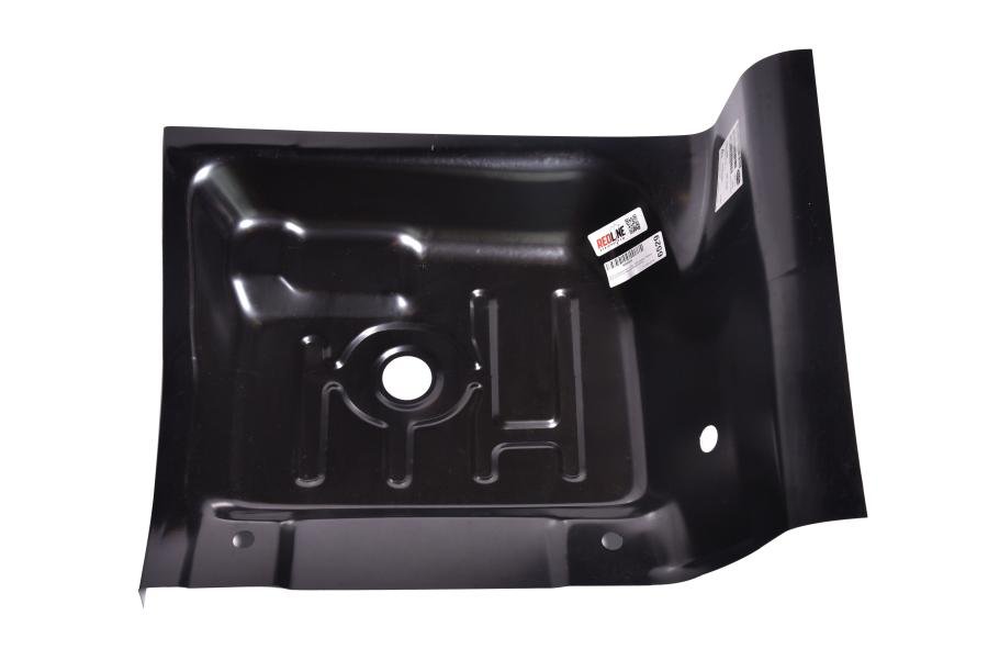 Instructions: Remove the damaged floor pan section by cutting along the factory seams. Clean and prepare the surrounding metal to ensure a secure bond. Position the new floor pan with the partial tunnel section, ensuring proper alignment. Weld securely into place, then grind down welds and finish with primer and paint for protection.